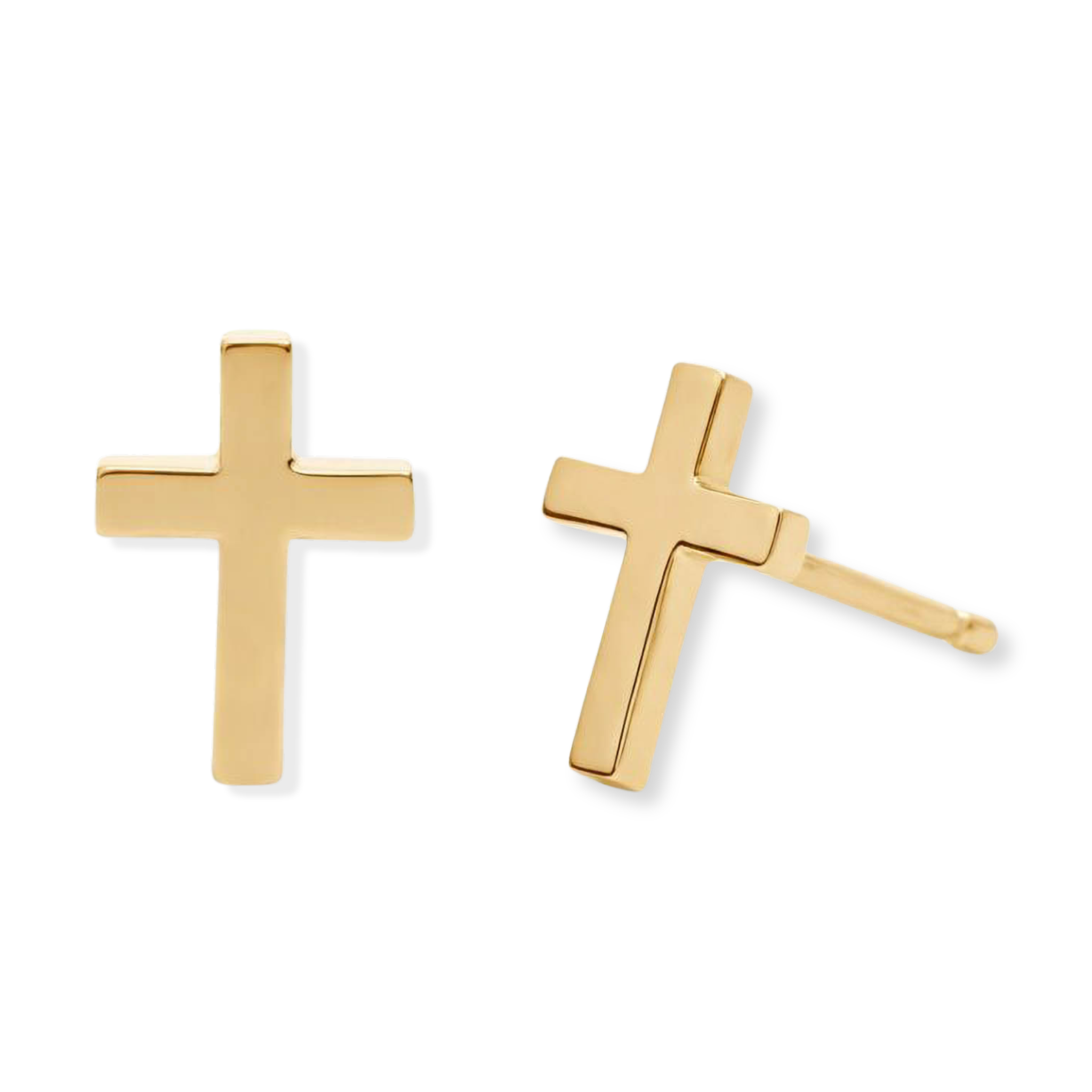 Crafted in solid 14K yellow gold, these delicate gold cross stud earrings feature a smooth, polished silhouette with timeless appeal. Measuring approximately 7.5 × 5.5 mm, each cross sits neatly within the ear lobe for a refined, understated look. Finished with classic post and friction back closures, they’re designed for comfortable, everyday, faith inspired look.